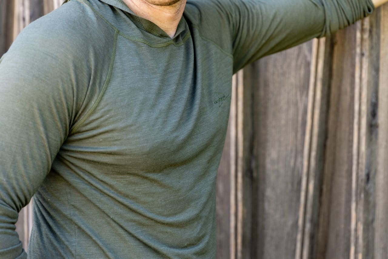 This shirt excels across all climates, providing sun protection in hot environments and effective layering capability in cold or wet conditions. The fabric’s antimicrobial properties help manage odor during extended wear and long movements. A generous cut allows full range of motion whether worn as a base layer or as a standalone top.