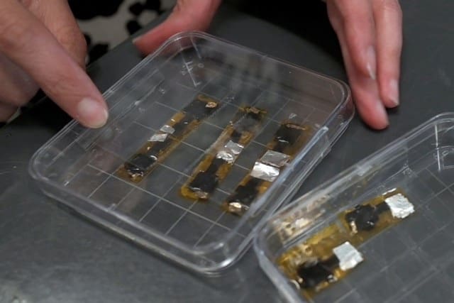 “Within each one of these little patches are … two layers of material that, when they vibrate or shake or move in any way, their vibrational energy can be harnessed and stored as energy,” Froio-Blumsack said.
