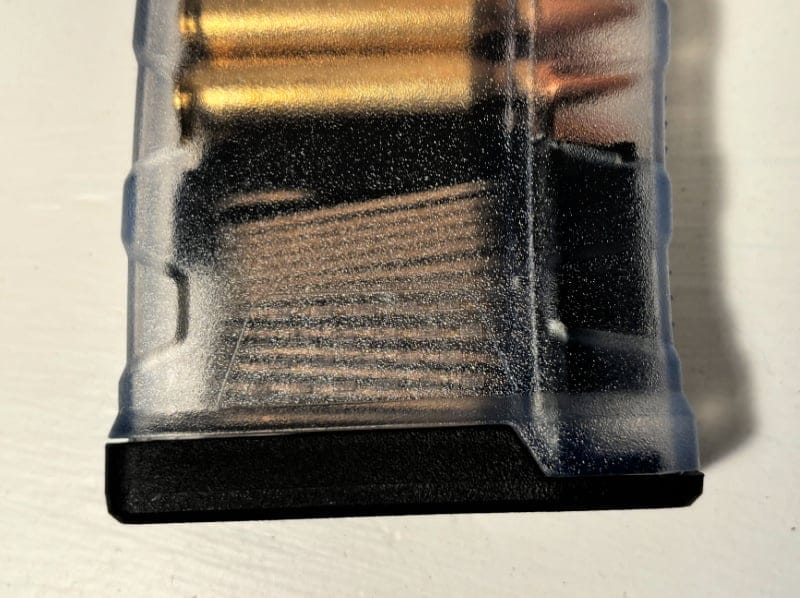Being able to see inside a magazine is huge. Opaque mags are either completely closed off or have tiny windows where you can see how many rounds remain, but some guesswork is involved. But with the Mission First Tactical magazines, you know exactly how much ammo you have left at a glance. This can be especially helpful to a shooter who needs to know his ammo status and instructors who might want to keep tabs on student round counts.