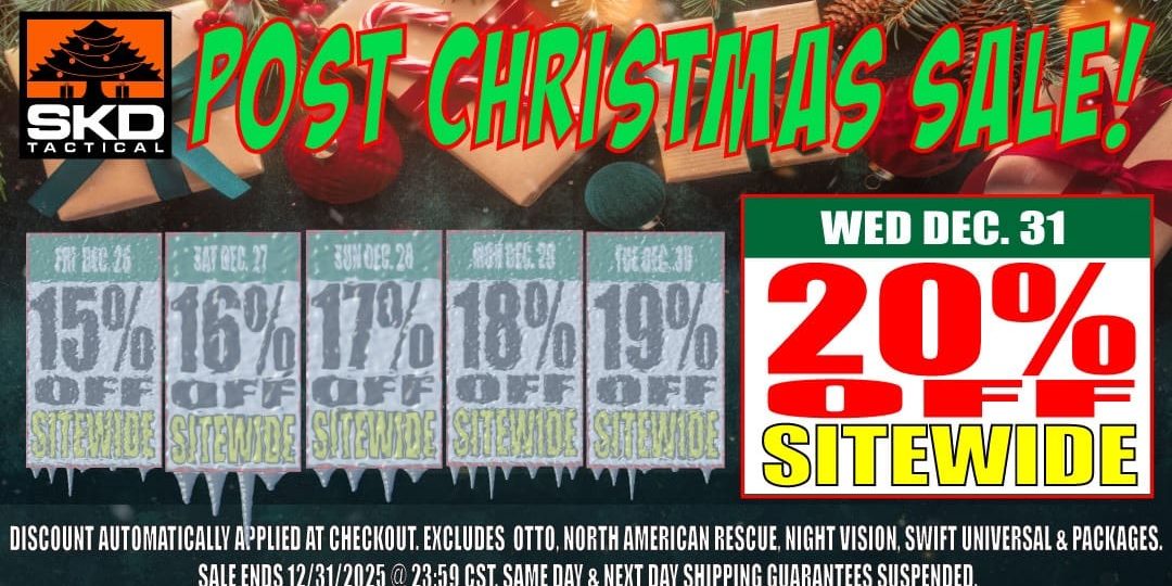Dec312025Soldier SystemsSKD Tactical Post Christmas Sale skdtac.com This entry was posted on Wednesday, December 31st, 2025 at 15:29 and is filed under Sales. You can follow any responses to this entry through the RSS 2.0 feed. Both comments and pings are currently closed. Category: Soldier SystemsBy AdminDecember 31, 2025Post navigationPreviousPrevious post:Chiappa Rhino: Bottom Barrel RevolverNextNext post:Interagency Senior Leaders Discuss Tactics on Advancing Counter UAS EffortsRelated PostsTacJobs – Applied Innovation Intelligence Lead at SilencerCoJanuary 19, 2026Galvion Expands ‘Charge on the Move’ Capability with Vehicle and Dismounted Integration SolutionsJanuary 19, 2026Staccato Introduces a New Addition to its HD 2011 Platform at SHOT SHOW: the Staccato HD C4XJanuary 19, 2026ForgeLine Solutions Debuts Performance Fieldwear Line at SHOT Show 2026January 19, 2026Gentex Unveils Ops-Core FAST XP Helmet System, A New Standard in Next-Generation Protection for Law EnforcementJanuary 19, 2026SOTech Debuting Cobra Drone Carrier Packs at SHOT ShowJanuary 19, 2026